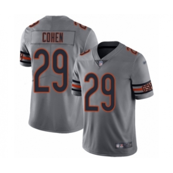 >Men's Chicago Bears #29 Tarik Cohen Limited Silver Inverted Legend Football Jersey
