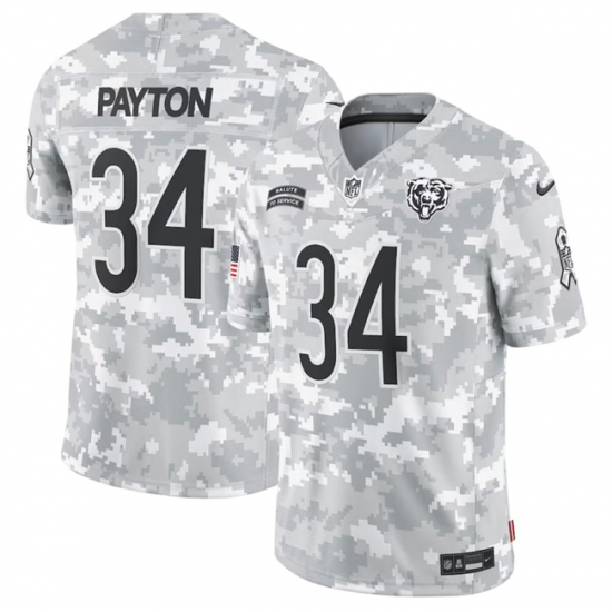>Men's Chicago Bears #34 Walter Payton 2024 Arctic Camo Salute To Service Limited Stitched Football Jersey