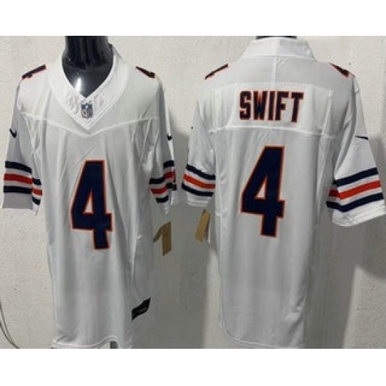 >Men's Chicago Bears #4 D'Andre Swift Limited White FUSE Vapor Jersey