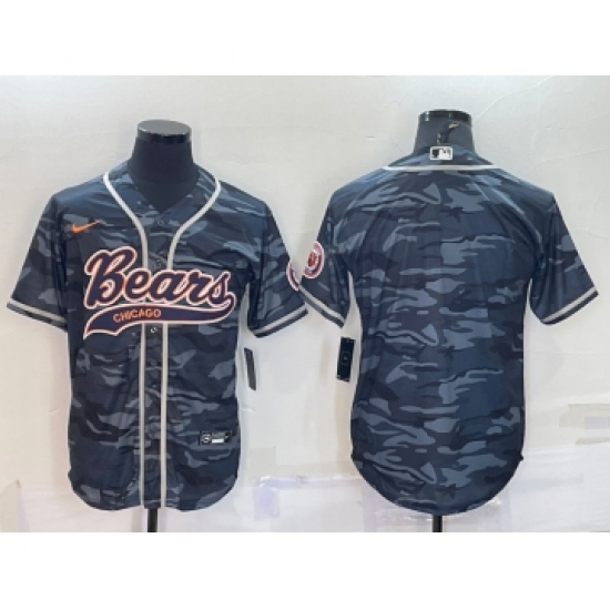 >Men's Chicago Bears Blank Grey Camo With Patch Cool Base Stitched Baseball Jersey