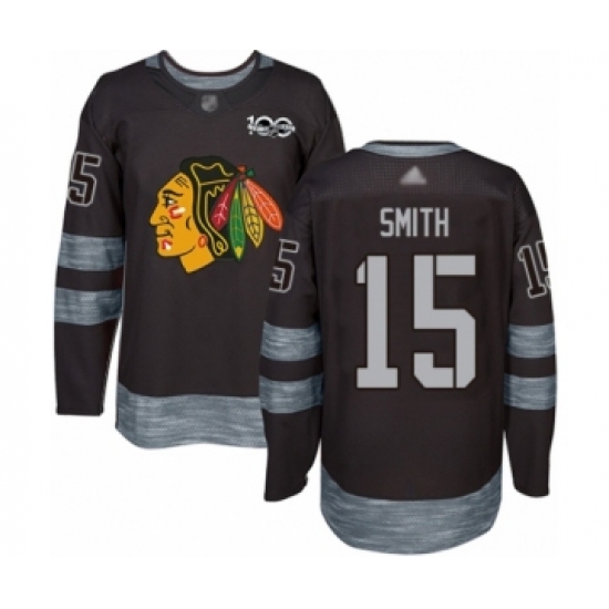 Men's Chicago Blackhawks #15 Zack Smith Authentic Black 1917-2017 100th Anniversary Hockey Jersey