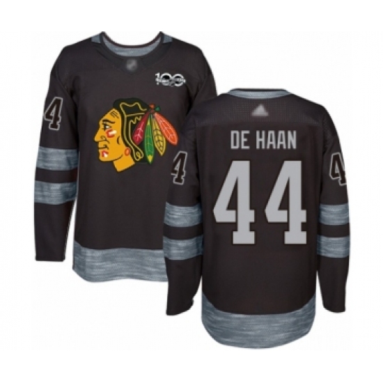 Men's Chicago Blackhawks #44 Calvin De Haan Authentic Black 1917-2017 100th Anniversary Hockey Jersey