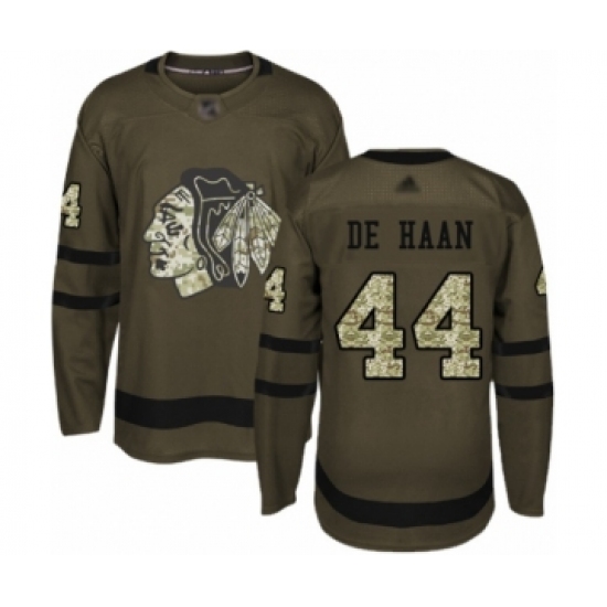 >Men's Chicago Blackhawks #44 Calvin De Haan Authentic Green Salute to Service Hockey Jersey