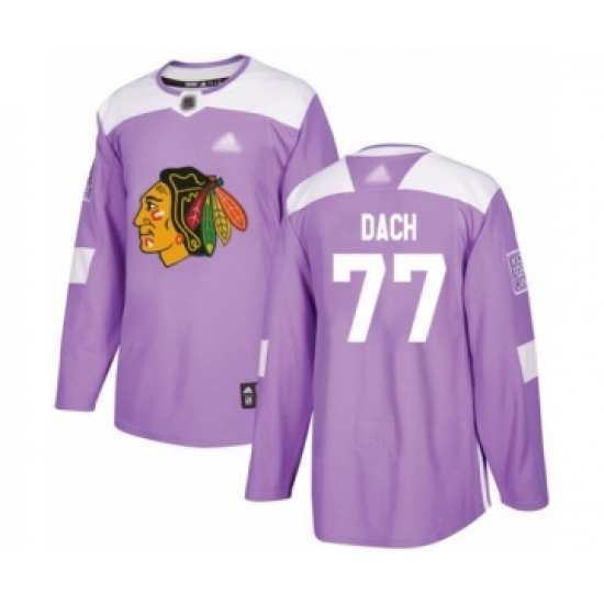 >Men's Chicago Blackhawks #77 Kirby Dach Authentic Purple Fights Cancer Practice Hockey Jersey