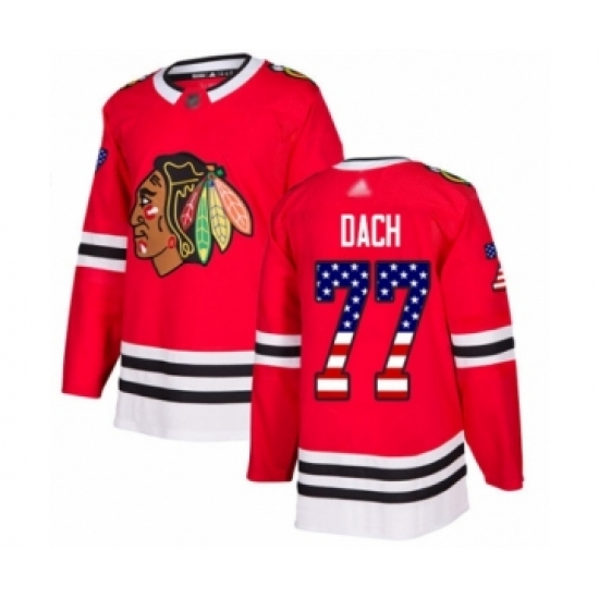 >Men's Chicago Blackhawks #77 Kirby Dach Authentic Red USA Flag Fashion Hockey Jersey