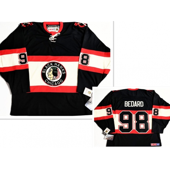 Men's Chicago Blackhawks #98 Connor Bedard Black Ccm Classic Stitched Hockey Jersey
