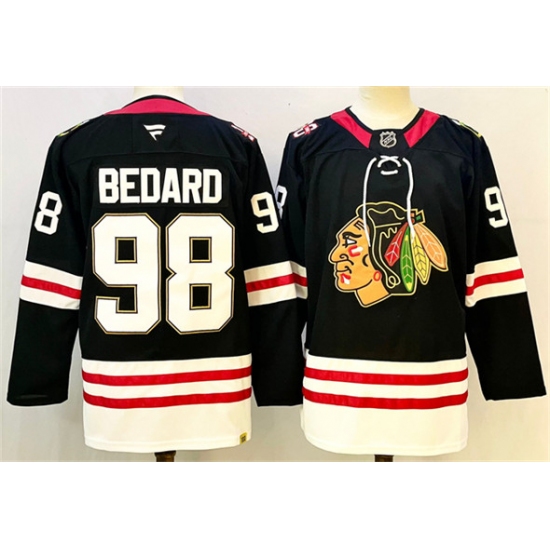 Men's Chicago Blackhawks #98 Connor Bedard Black 2024-25 Stitched Hockey Jersey