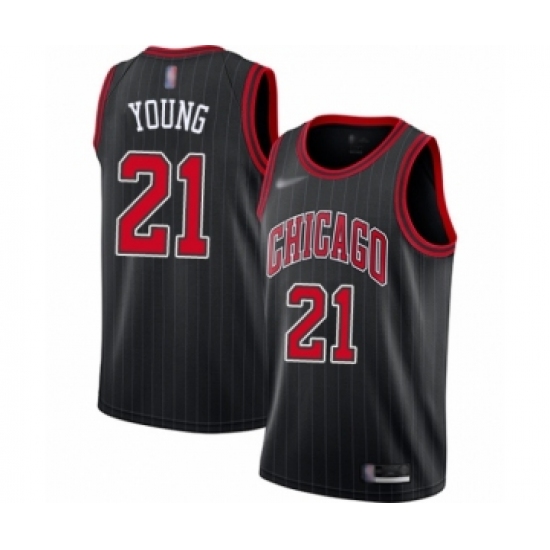 >Men's Chicago Bulls #21 Thaddeus Young Authentic Black Finished Basketball Jersey - Statement Edition