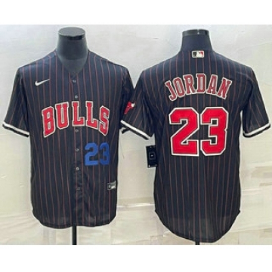 >Mens Chicago Bulls #23 Michael Jordan Number Black With Cool Base Stitched Baseball Jersey