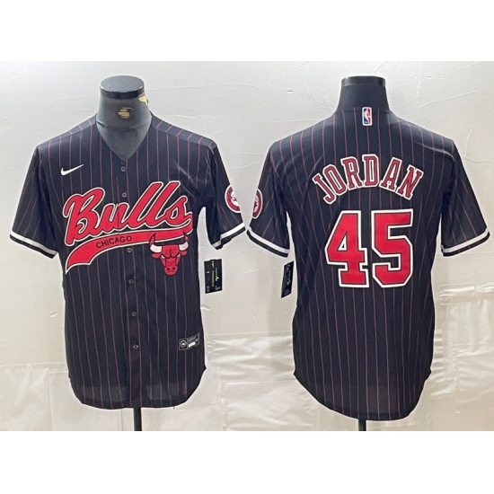 Men's Chicago Bulls #45 Michael Jordan Black Pinstripe Cool Base Stitched Baseball Jersey