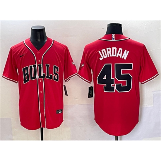 >Men's Chicago Bulls #45 Michael Jordan Red Cool Base Stitched Baseball Jersey