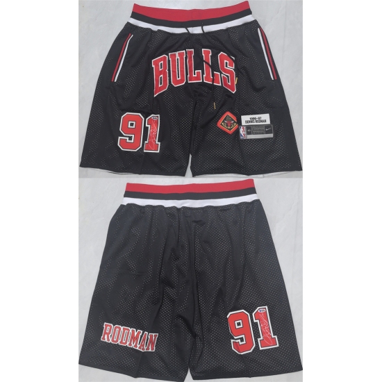 >Men's Chicago Bulls #91 Dennis Rodman Black 2025 Shorts (Run Small)