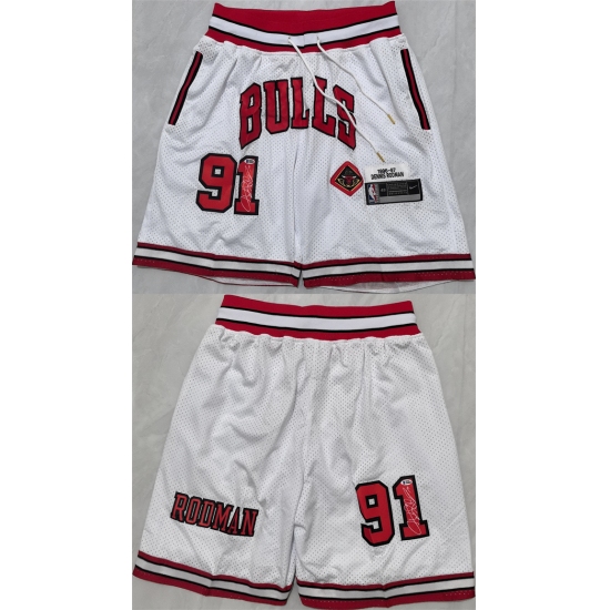 Men's Chicago Bulls #91 Dennis Rodman White 2025 Shorts (Run Small)