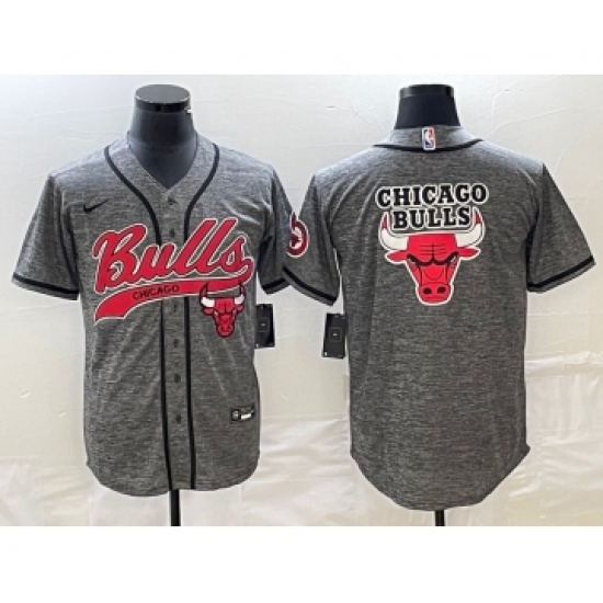 Men's Chicago Bulls Blank Grey Gridiron Cool Base Stitched Baseball Jersey