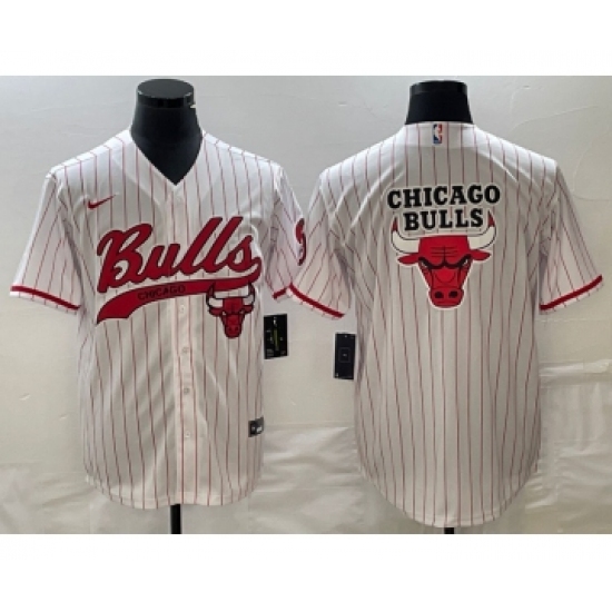 Men's Chicago Bulls Blank White Pinstripe Cool Base Stitched Baseball Jersey