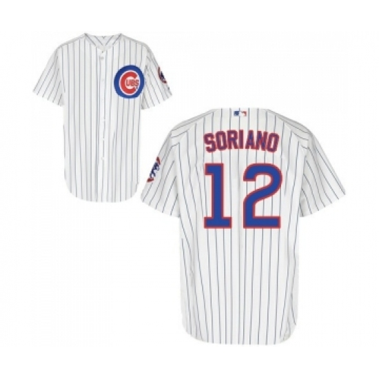 Men's Chicago Cubs #12 Alfonso Soriano White Pinstriped Home Jersey