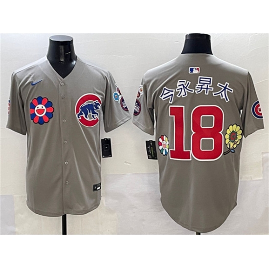 >Men's Chicago Cubs #18 今永昇太 Gray 2025 Tokyo Series Limited Stitched Baseball Jersey