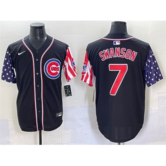 Men's Chicago Cubs #7 Dansby Swanson Black 2025 Independence Day Vapor Premier Limited Stitched Baseball Jersey