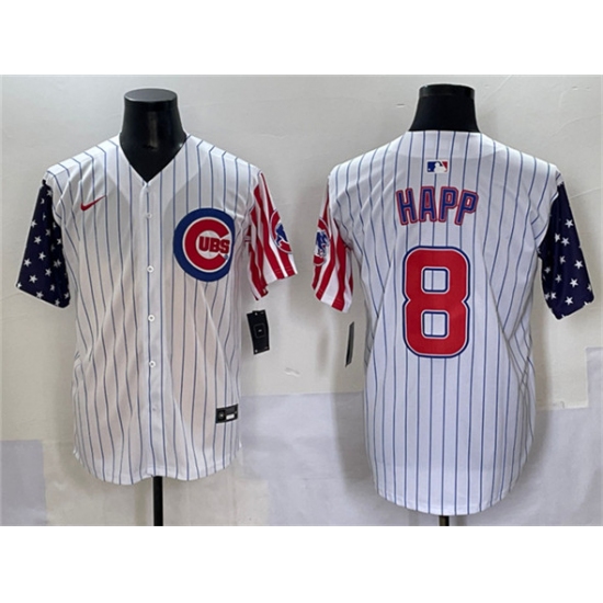 Men's Chicago Cubs #8 Ian Happ White 2025 Independence Day Vapor Premier Limited Stitched Baseball Jersey