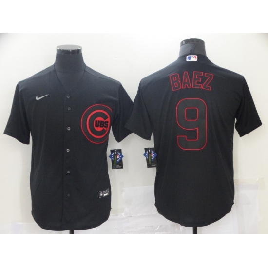 >Men's Chicago Cubs #9 Javier Baez Authentic Black Shadow Jersey