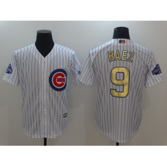 Men's Chicago Cubs #9 Javier Baez Authentic White Gold Program Flex Base Jersey