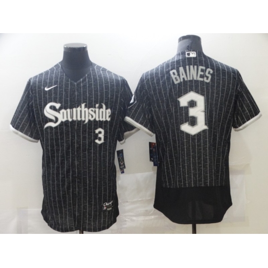 Men's Chicago White Sox #3 Harold Baines Replica Black Alternate Home Jersey