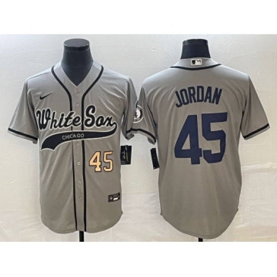 >Men's Chicago White Sox #45 Michael Jordan Number Grey Cool Base Stitched Baseball Jersey