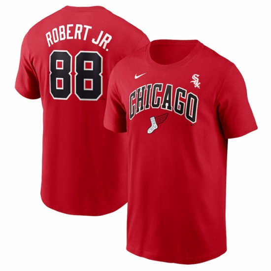 >Men's Chicago White Sox #88 Luis Robert Jr. Red 2025 City Connect Name & Number T-Shirt