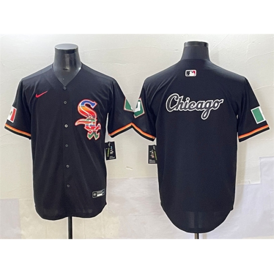 >Mens Chicago White Sox Team Big Logo Black Mexico Limited Stitched Jersey