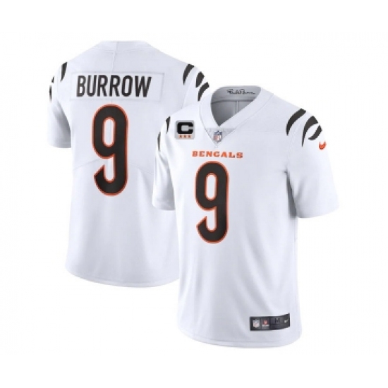 Men's Cincinnati Bengals 2022 #9 Joe Burrow White With 3-star C Patch Vapor Limited Stitched NFL Jersey