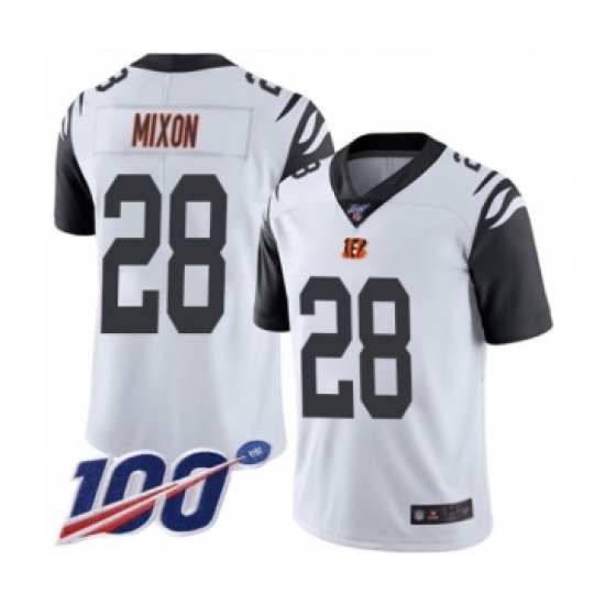 >Men's Cincinnati Bengals #28 Joe Mixon Limited White Rush Vapor Untouchable 100th Season Football Jersey