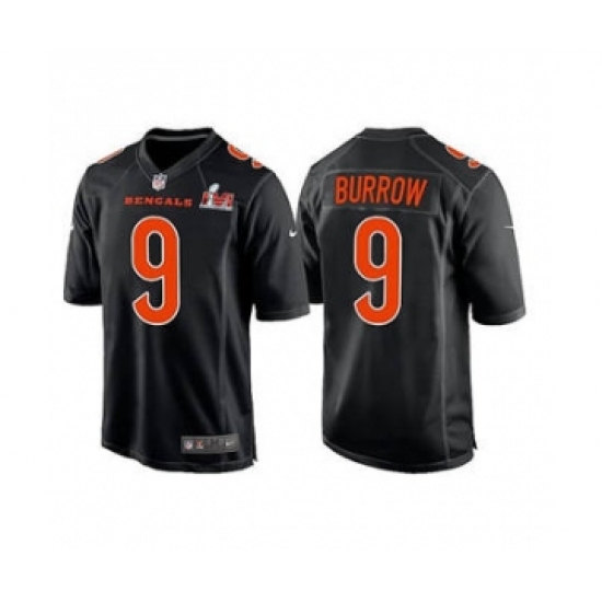 >Men's Cincinnati Bengals #9 Joe Burrow 2022 Black Super Bowl LVI Game Stitched Jersey