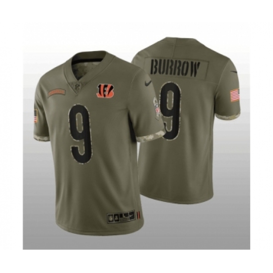 >Men's Cincinnati Bengals #9 Joe Burrow 2022 Olive Salute To Service Limited Stitched Jersey