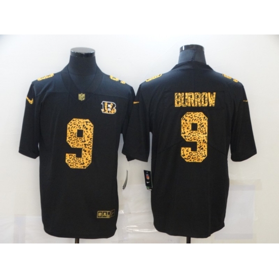 >Men's Cincinnati Bengals #9 Joe Burrow Black Nike Leopard Print Limited Jersey
