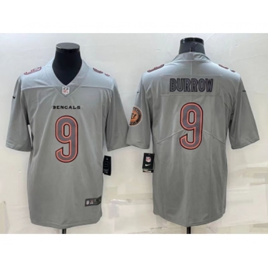 >Men's Cincinnati Bengals #9 Joe Burrow LOGO Grey Atmosphere Fashion 2022 Vapor Untouchable Stitched Limited Jersey