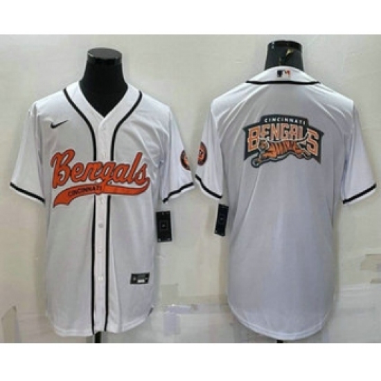 >Men's Cincinnati Bengals White Team Big Logo With Patch Cool Base Stitched Baseball Jersey