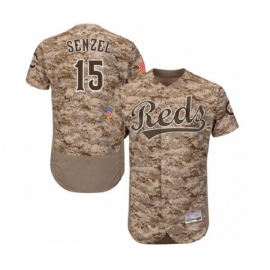>Men's Cincinnati Reds #15 Nick Senzel Replica Camo Alternate Cool Base Baseball Jersey