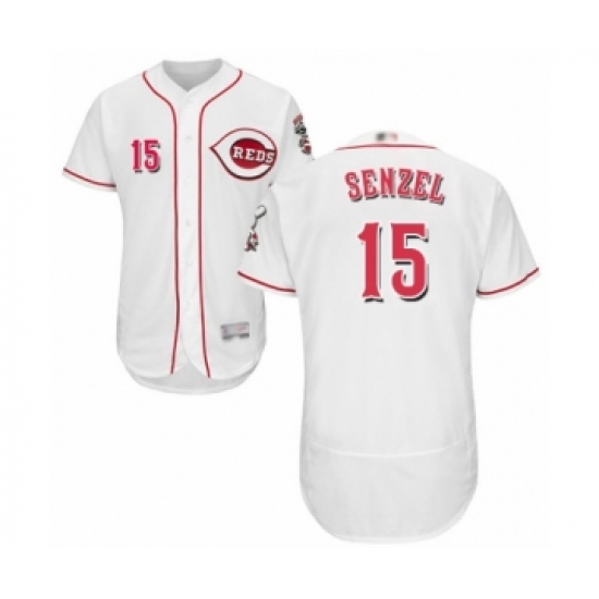 Men's Cincinnati Reds #15 Nick Senzel White Home Flex Base Authentic Collection Baseball Jersey