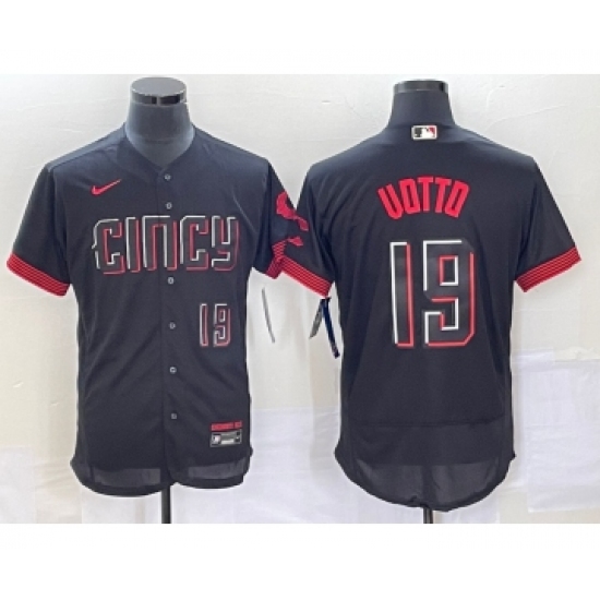 >Men's Cincinnati Reds #19 Joey Votto Number Black 2023 City Connect Flex Base Stitched Jersey 2
