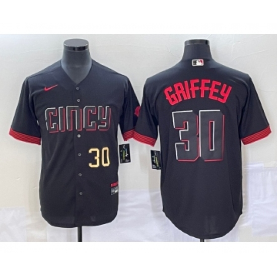 Men's Cincinnati Reds #30 Ken Griffey Jr Number Black 2023 City Connect Cool Base Stitched Jersey2