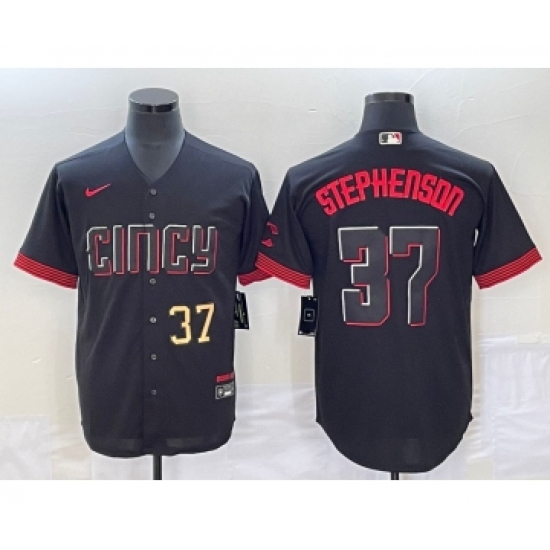 >Men's Cincinnati Reds #37 Tyler Stephenson Number Black 2023 City Connect Cool Base Stitched Jersey