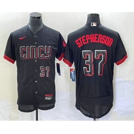 Men's Cincinnati Reds #37 Tyler Stephenson Number Black 2023 City Connect Flex Base Stitched Jersey