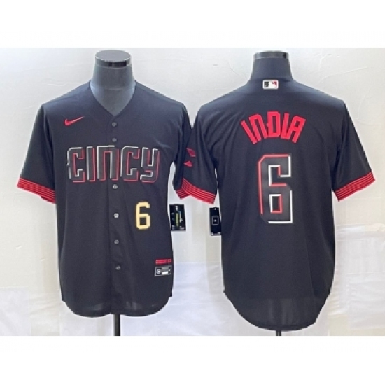 >Men's Cincinnati Reds #6 Jonathan India Number Black 2023 City Connect Stitched Jersey1
