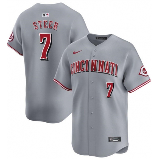 Men's Cincinnati Reds #7 Spencer Steer Gray Away Limited Stitched Baseball Jersey