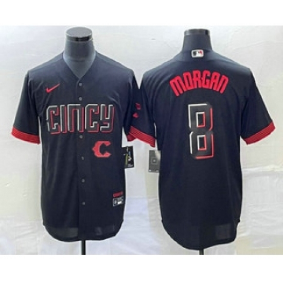 Men's Cincinnati Reds #8 Joe Morgan Black 2023 City Connect Cool Base Stitched Jersey 1