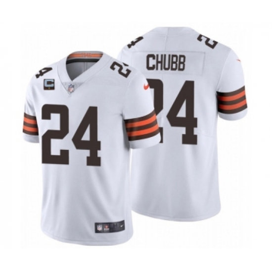 >Men's Cleveland Browns 2022 #24 Nick Chubb White With 1-star C Patch Vapor Untouchable Limited NFL Stitched Jersey