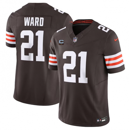 >Men's Cleveland Browns #21 Denzel Ward Brown 2024 F.U.S.E. With 1-Star C Vapor Untouchable Limited Stitched Jersey