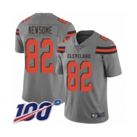 >Men's Cleveland Browns #82 Ozzie Newsome Limited Gray Inverted Legend 100th Season Football Jersey