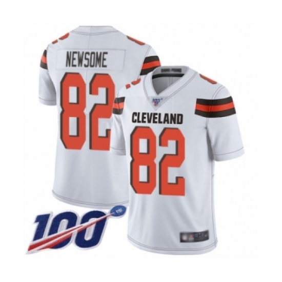 >Men's Cleveland Browns #82 Ozzie Newsome White Vapor Untouchable Limited Player 100th Season Football Jersey