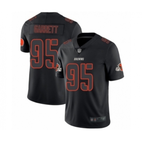 >Men's Cleveland Browns #95 Myles Garrett Limited Black Rush Impact Football Jersey